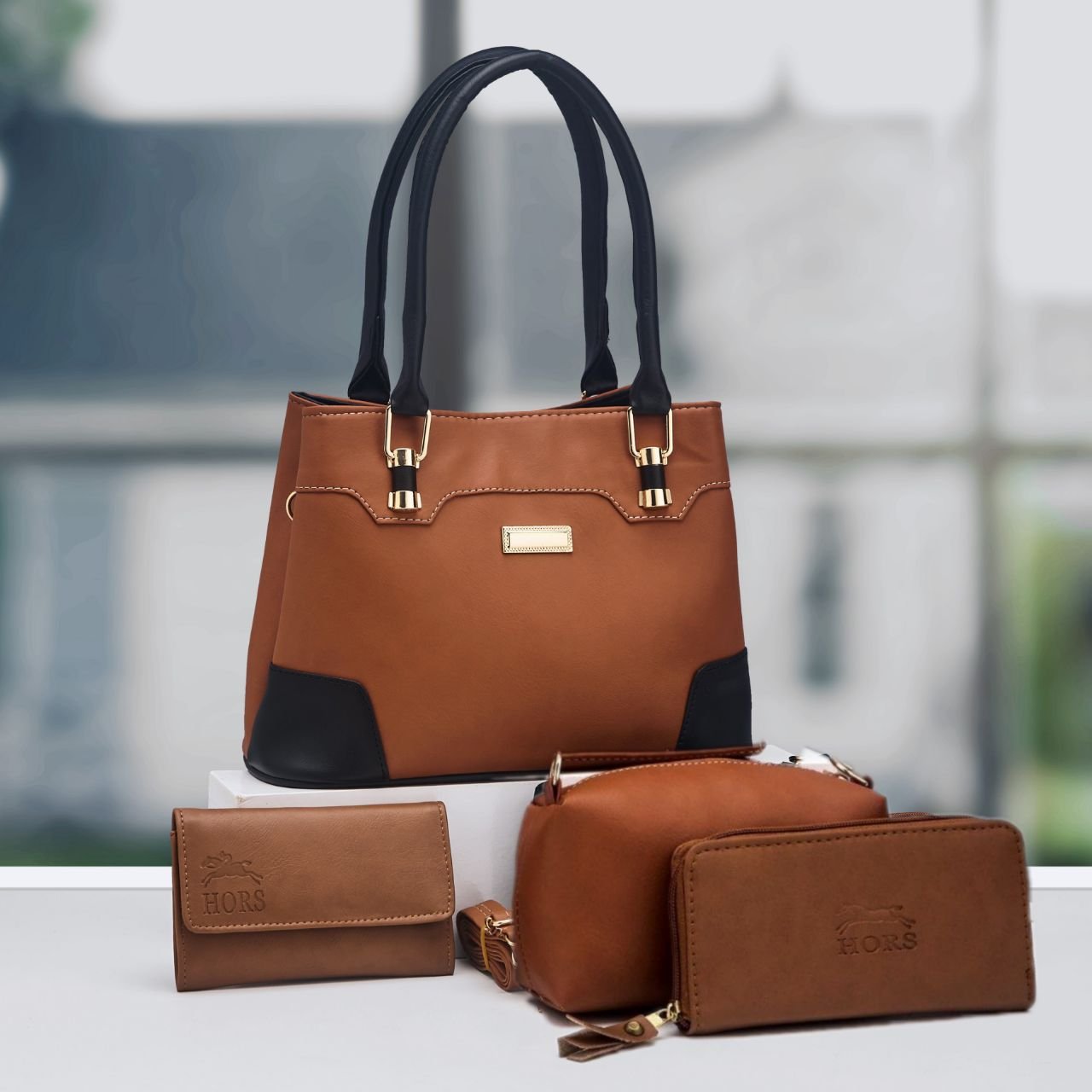 ها الطقم الأنيق كيجمع ليك 4 ديال الشنطات متناسقين فالألوان والستايل، باش تكوني ديما جاهزة لأي مناسبة 👌